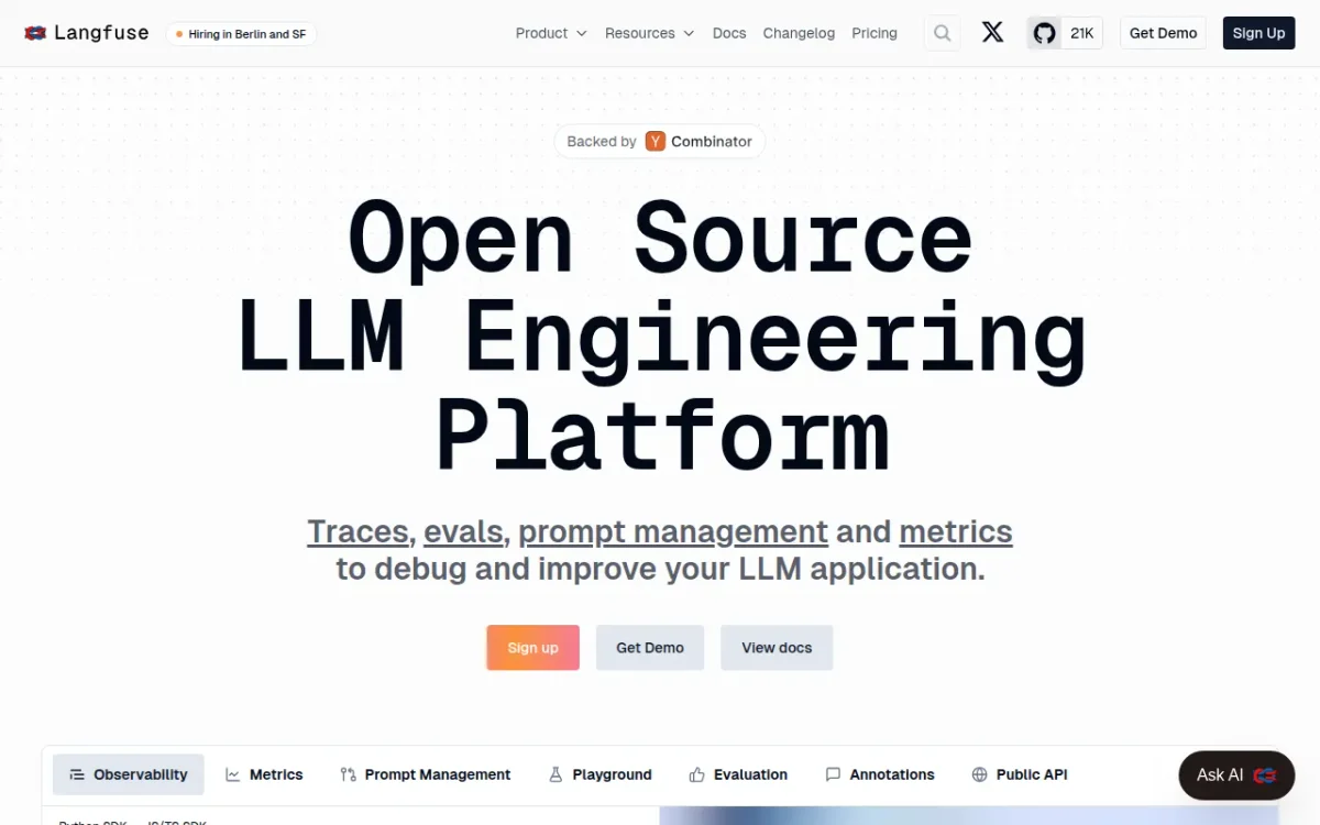 Langfuse is an open-source platform for managing LLM applications, offering observability, prompt management, and evaluation metrics to enhance performance and debugging.