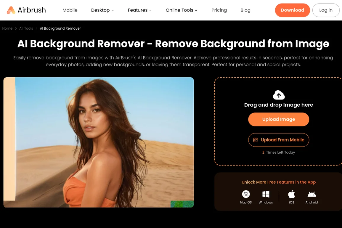 Airbrush's AI Background Remover allows users to quickly eliminate backgrounds from images, creating professional-quality visuals for social media and personal projects in seconds.