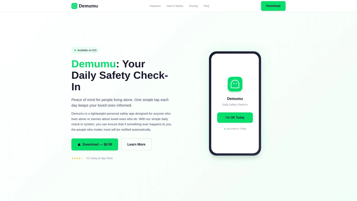 Demumu ensures peace of mind for individuals living alone by facilitating daily safety check-ins and automatic emergency alerts to loved ones.