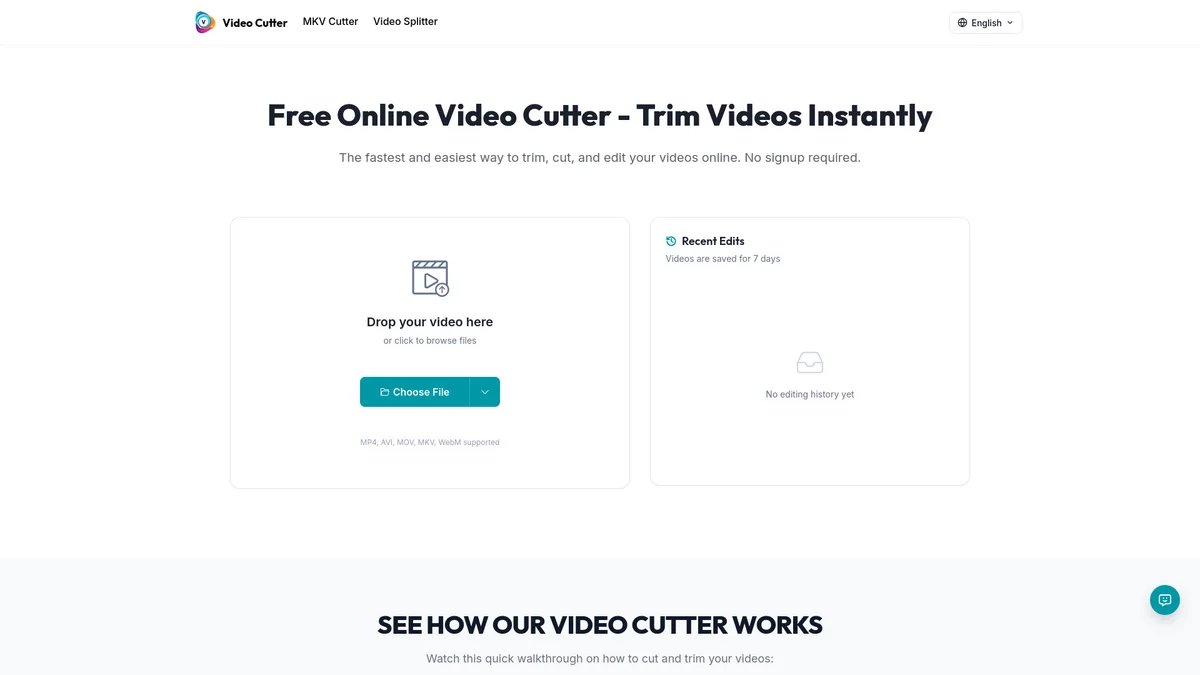 Video Cutter is a free, intuitive online tool that allows users to quickly trim, cut, and edit videos without any sign-up or ads, making video editing accessible for everyone.