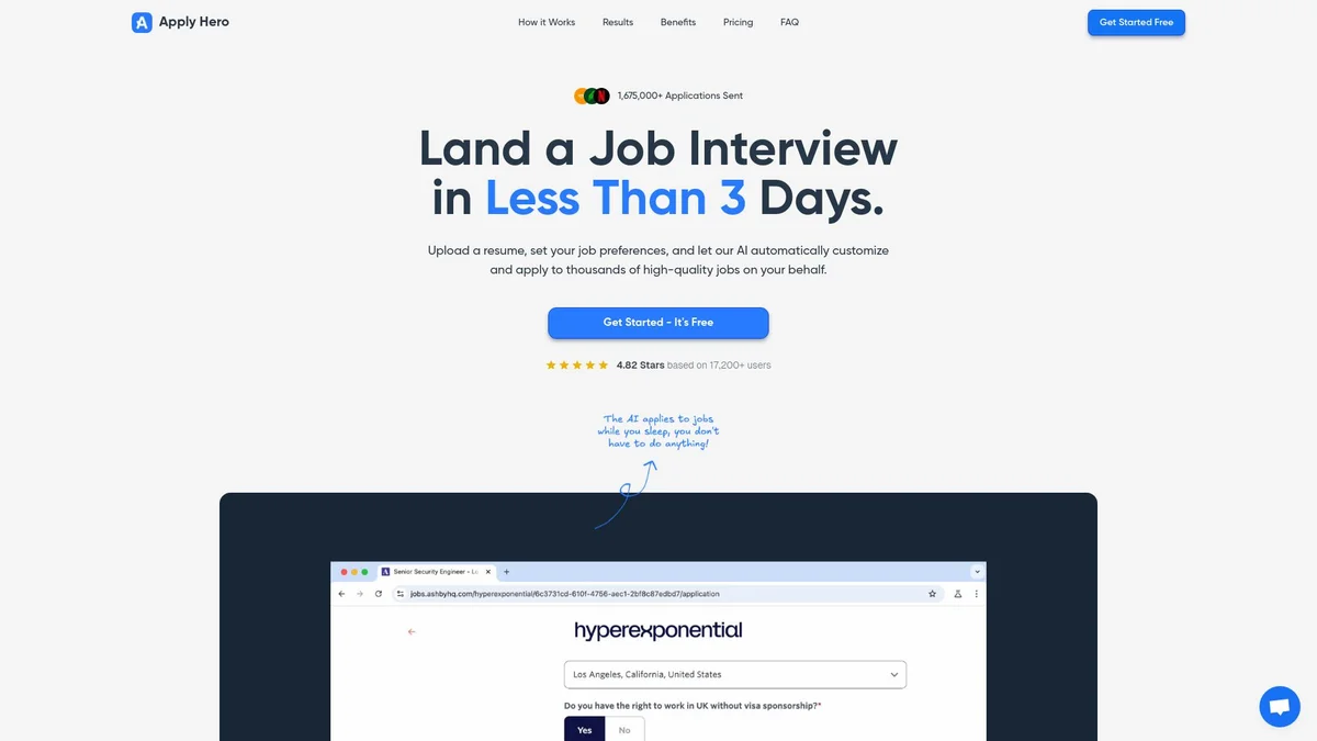 Apply Hero AI streamlines job applications, sending tailored resumes and applications to thousands of jobs on your behalf for faster interview opportunities.