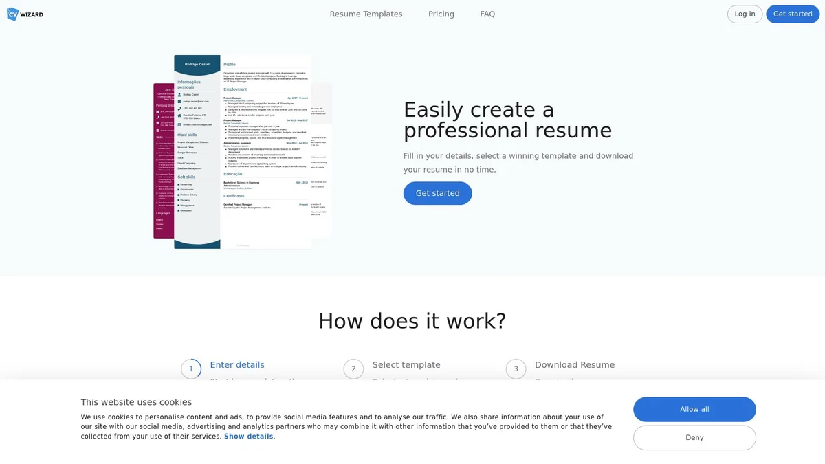 Craft professional CVs effortlessly with CVwizard's intuitive interface, multilingual support, and user-friendly templates designed to enhance your job application success.