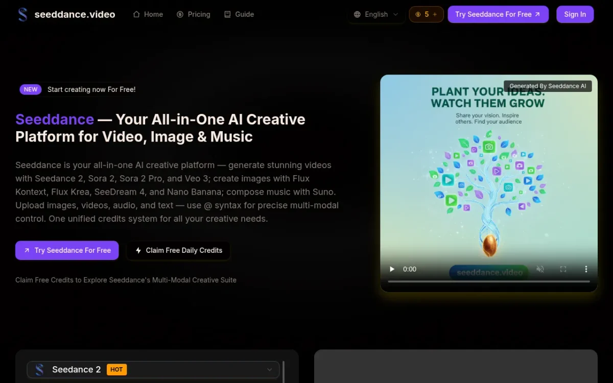 Generate stunning videos, images, and music effortlessly with Seeddance AI's powerful multi-modal creative tools tailored for artists and content creators.