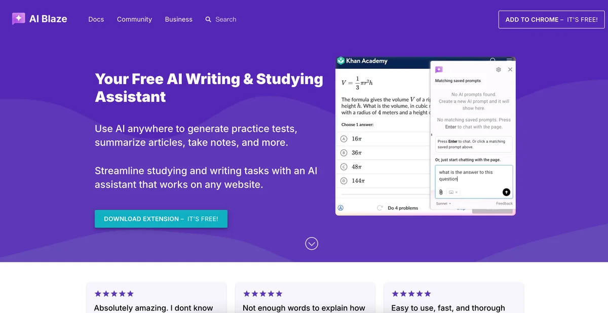 AI Blaze enhances studying and writing by providing instant answers, study guides, and writing improvements, making academic tasks easier for students everywhere.