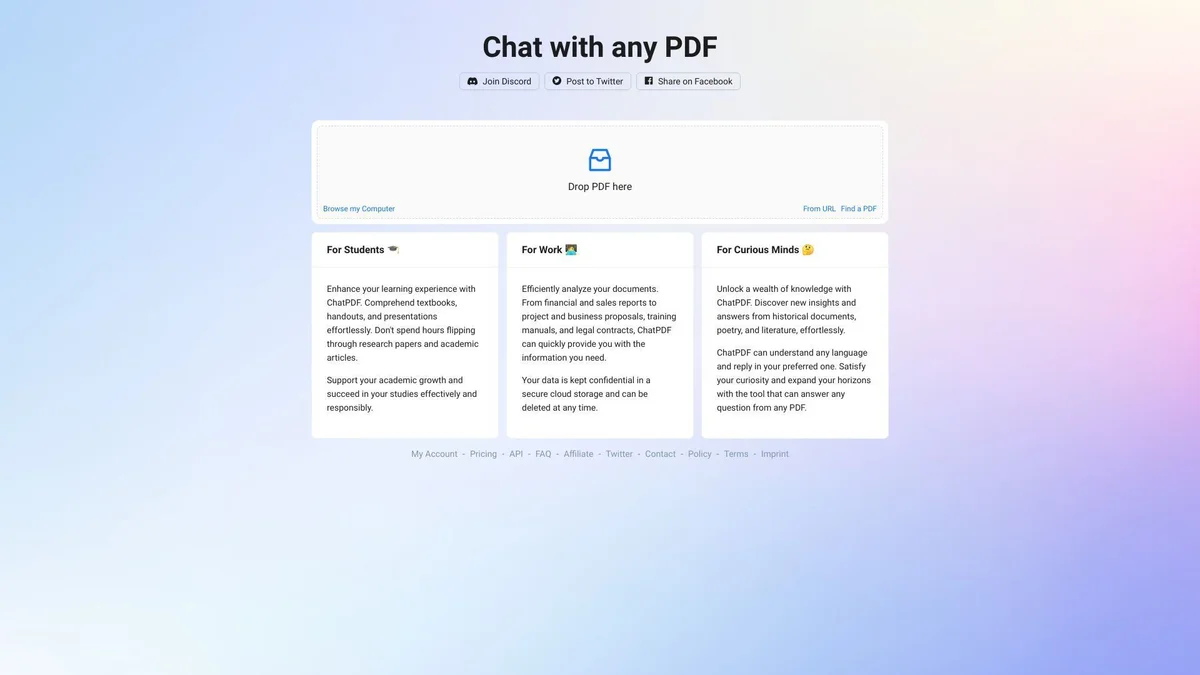 ChatPDF is an AI tool that allows users to interact with PDFs, summarizing content and answering questions, making research and study easier and more efficient.