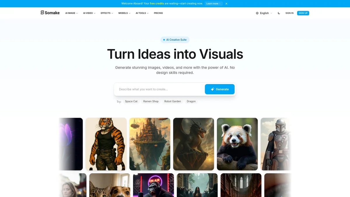 Create stunning images and videos effortlessly with Somake AI's innovative tools, designed for both personal and professional use.