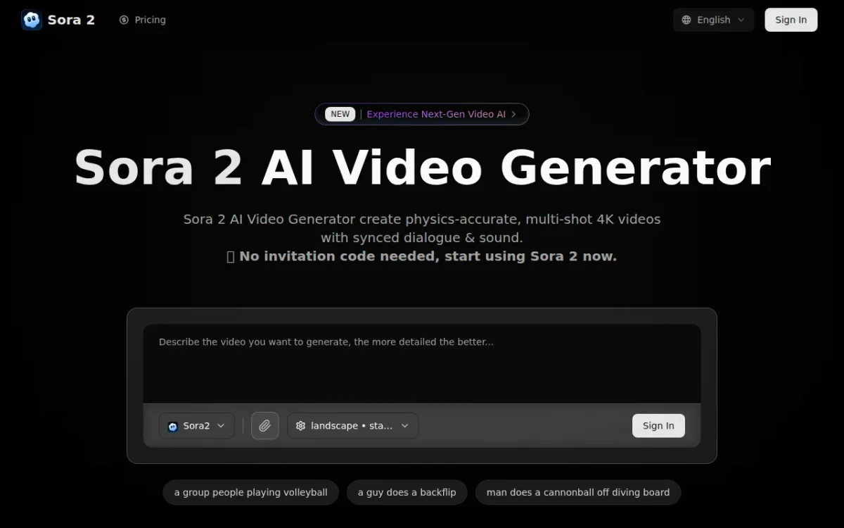 Sora2 Video Generator enables users to generate cinematic, character-consistent videos quickly, enhancing storytelling with high-definition quality and immersive sound.