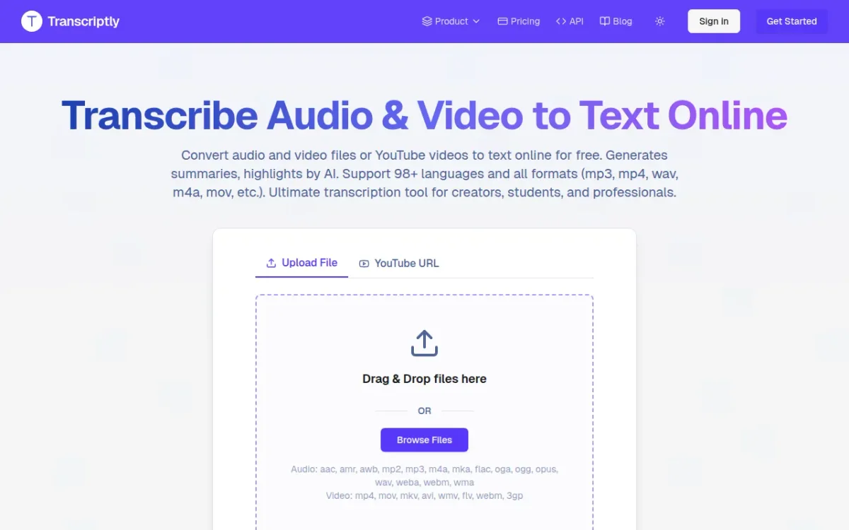 Transcriptly offers a powerful online conversion tool to transform audio and video files into accurate text transcripts effortlessly and quickly, enhancing productivity for users.