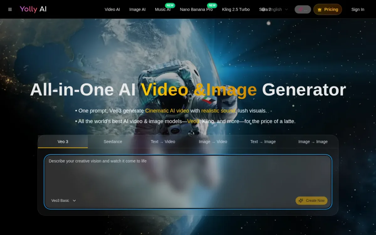 Yolly AI is an all-in-one platform to generate cinematic videos and high-resolution images from text prompts, revolutionizing visual content creation effortlessly.